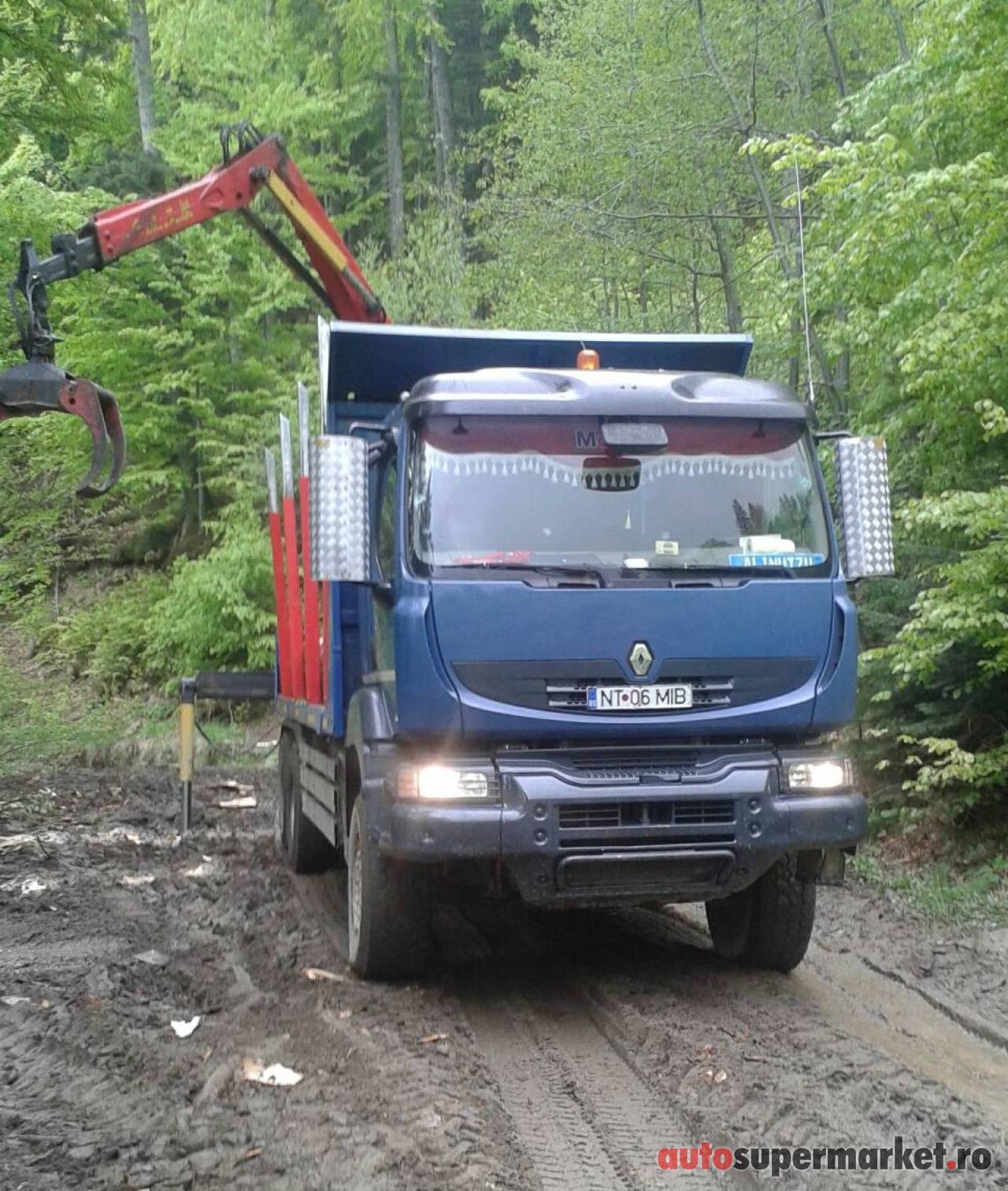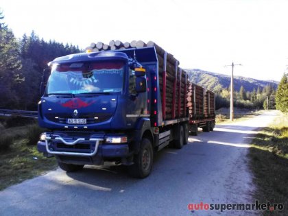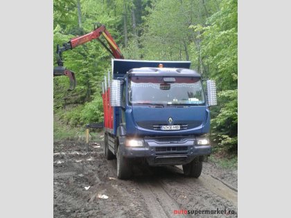 Renault Kerax 450 DXi, an fabricație 2008, AC, tracțiune 6Ă—4, Euro4, rulaj 320.000 km reali verificabili istoric la reprezentanțĂŁ Volvo, geamuri electrice, maxim autorizat 26 t, cabinĂŁ dormit, motor, cutie și casetĂŁ directie originale Volvo, rĂŁcoanțe Exte, fier și aluminiu, macara Epsilon 145Z, anvelope foarte bune 75% fațĂŁ și spate 45%, lungime utilĂŁ 6, 20 m.