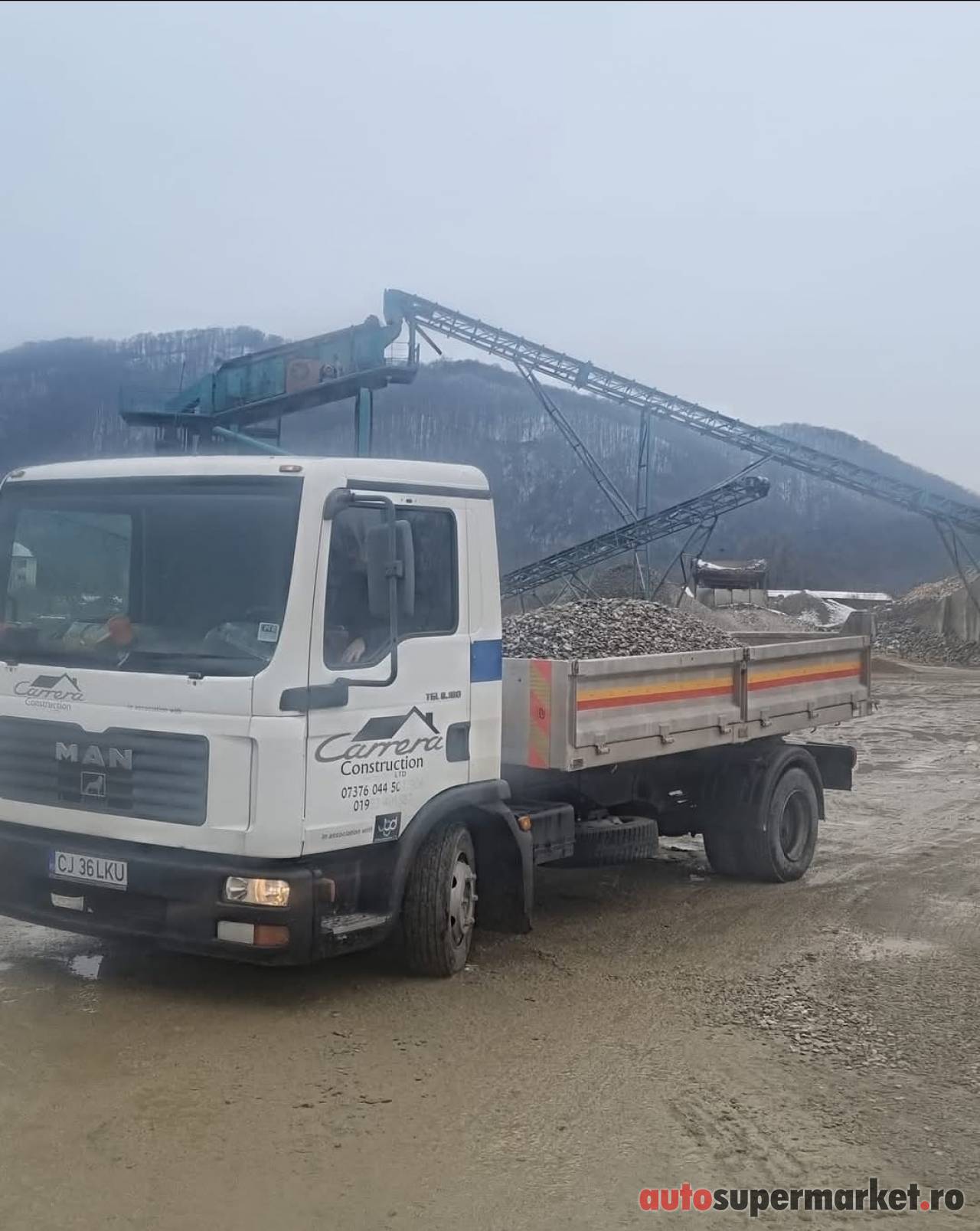 Autoutilitara MAN TGL 7.150, an 2006, Euro 3, AC, 4.580 cmc, 150 CP, 420.000 km, servo directie, basculanta pe spate, masa maxima admisa 7.490 kg, greutate propriie 3.707 kg (redusa datorita benei de aluminiu usoara), stare perfecta.
