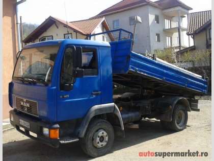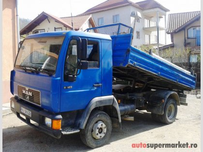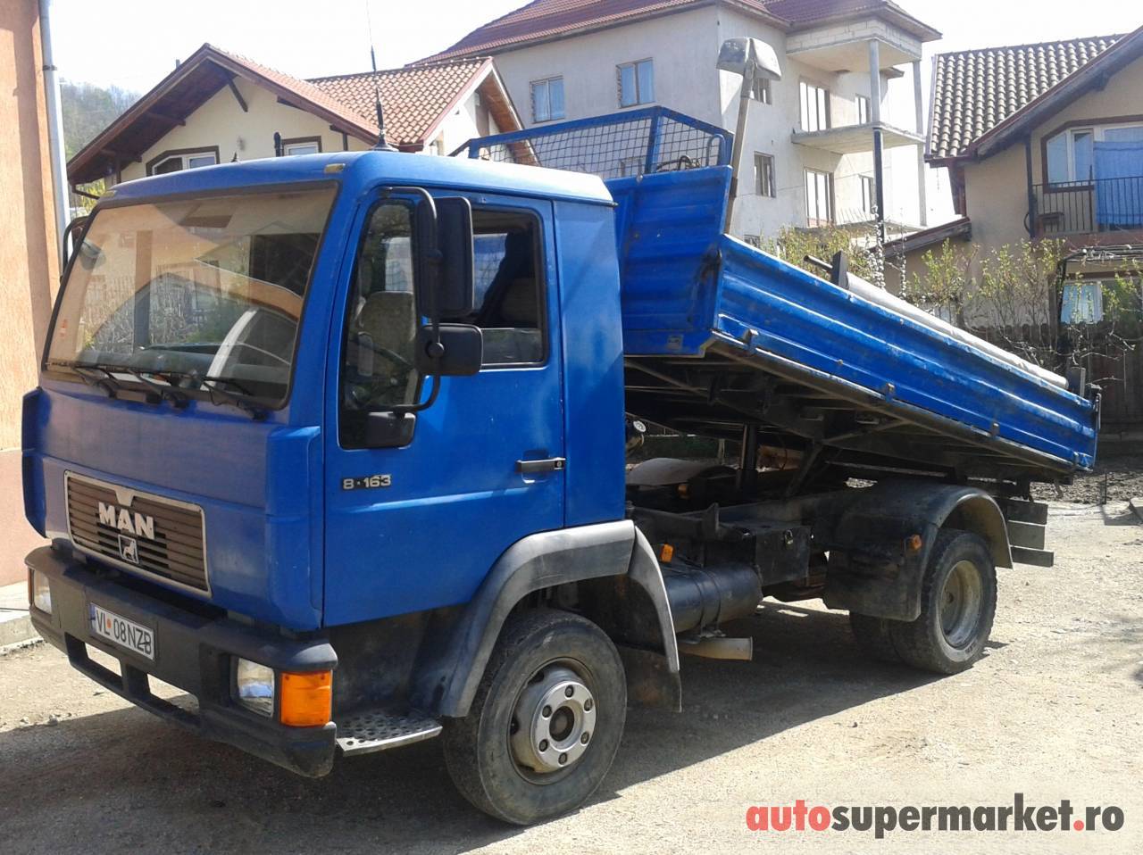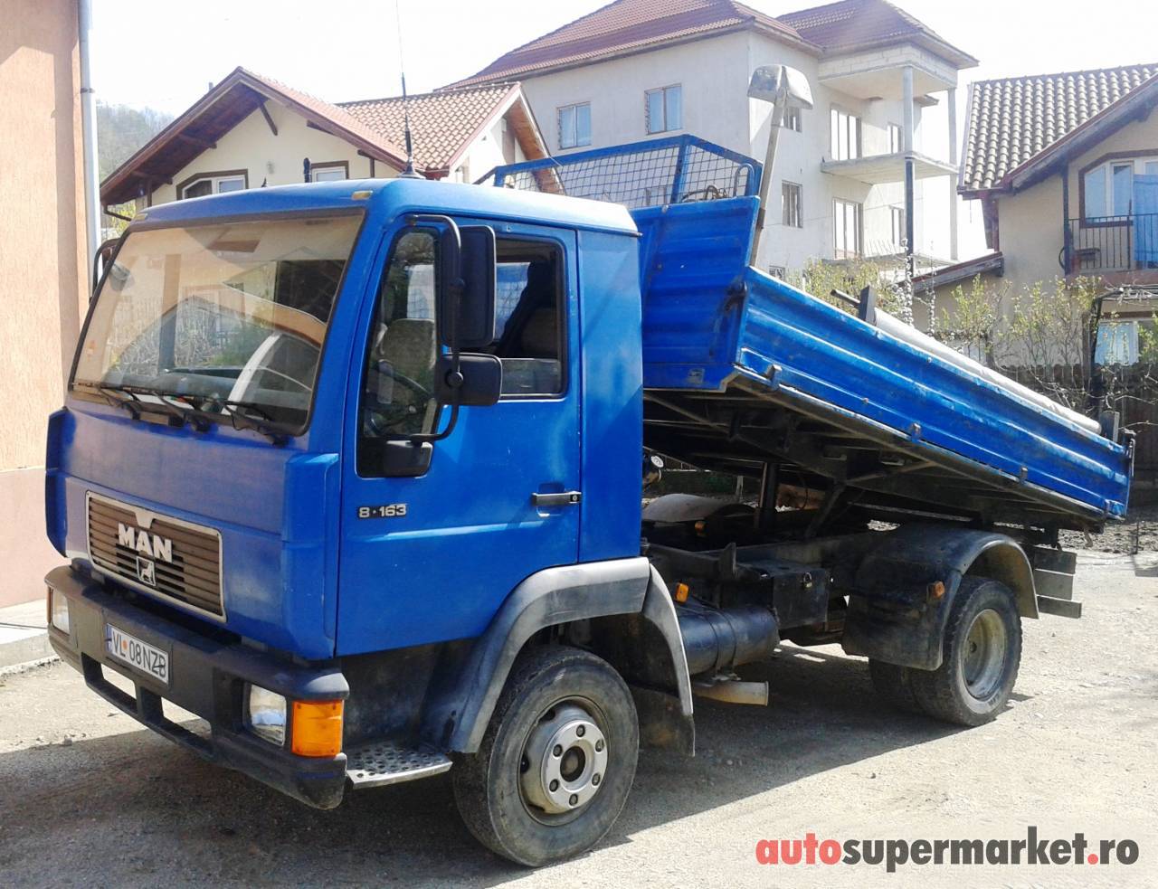 BasculabilĂŁ MAN 8.163, motor 4.580 cmc, 163 CP, axa dublĂŁ spate, an fabricație 1996, Euro 2, basculabil pe 3 pĂŁrți, dimensiune benĂŁ 3, 80 m Ă— 2, 30 m Ă— 1, 45 m (L Ă— l Ă— h), prelatĂŁ foarte bunĂŁ, 3 locuri, acte la zi (ITP, RCA, Ă®nmatriculata RO), taxa plĂŁtitĂŁ și nerecuperatĂŁ.