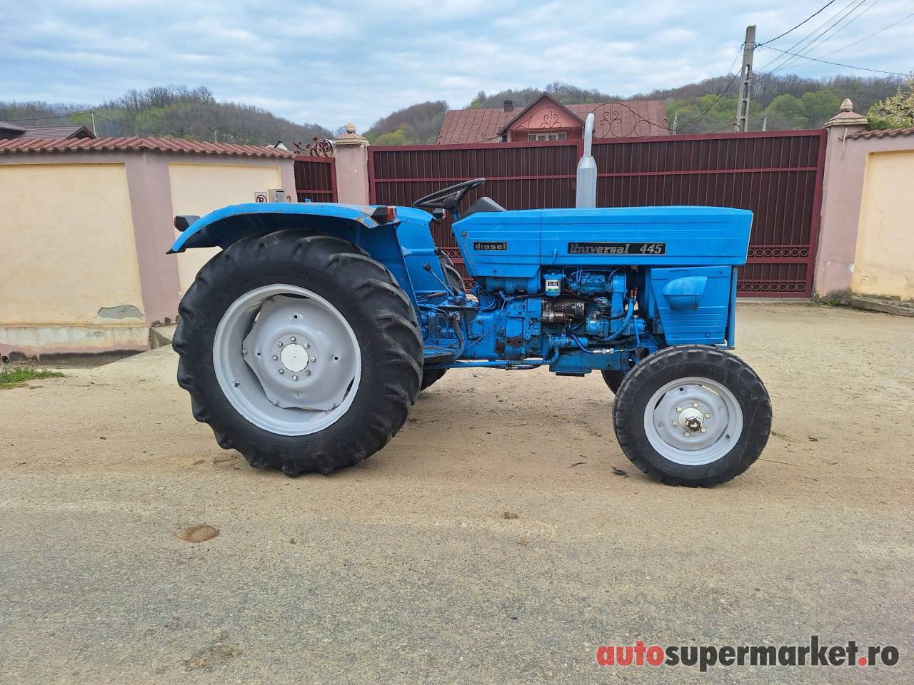 Tractor Universal 445, cutie de viteza cu 2 manete, 3 trepte pe reductor, servo-directie, instalatie electrica functionala. Tractorul functioneaza perfect, accept orice proba.