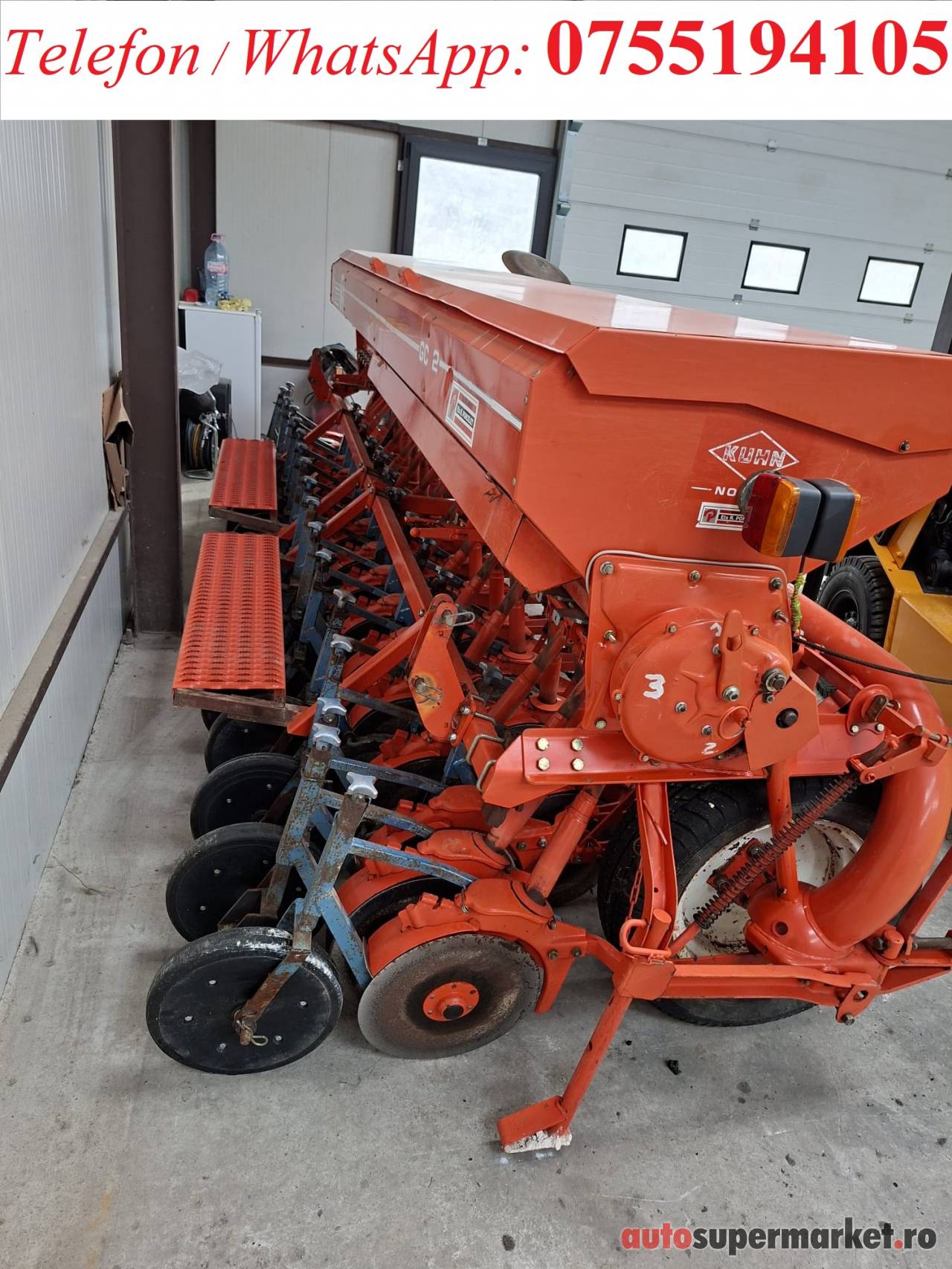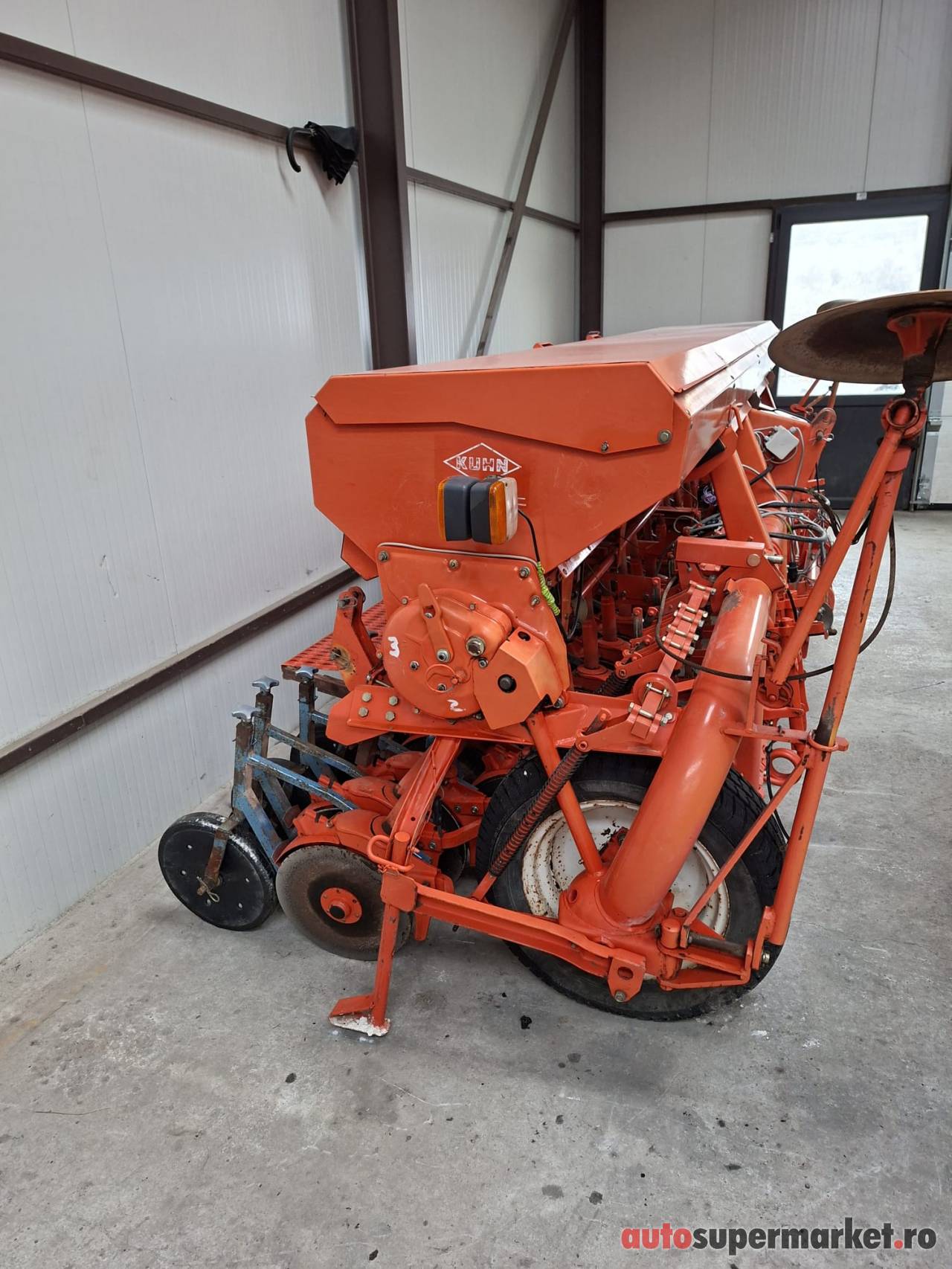 Semanatoare paioase pe discuri Kuhn, latime de lucru 4 metri, vopsea originala, marcatoare hidraulice, rori de tasare, posibilitate transport la domiciliul dvs.